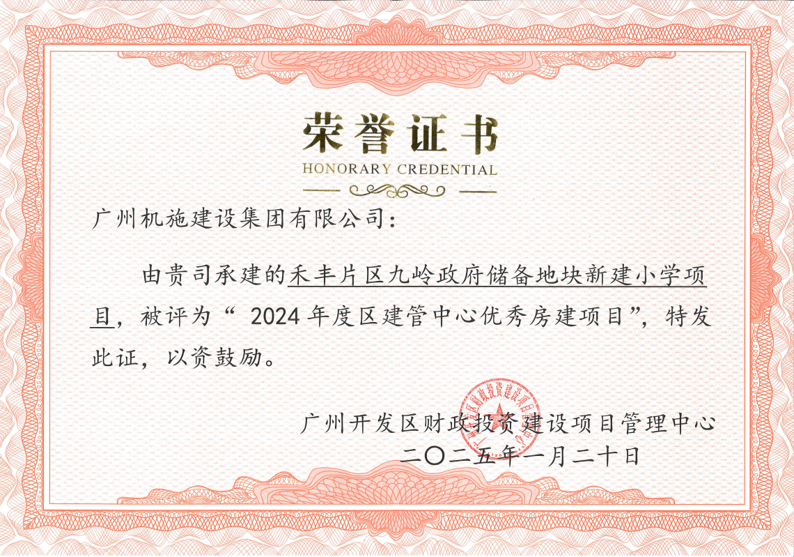 近日,機(jī)施集團(tuán)多個(gè)項(xiàng)目在 “2024年度黃埔區(qū)建管中心房建項(xiàng)目總結(jié)暨優(yōu)秀項(xiàng)目表彰大會(huì)”榮獲表彰。其中,華南師范大學(xué)附屬中學(xué)(知識(shí)城校區(qū))項(xiàng)目、禾豐片區(qū)九嶺政府儲(chǔ)備地塊新建小學(xué)項(xiàng)目榮獲“2024年度區(qū)建管中心優(yōu)秀房建項(xiàng)目”,福山福洞村安置區(qū)建設(shè)工程、黃埔區(qū)新建特殊教育學(xué)校項(xiàng)目、香雪小學(xué)整體翻新改造及新建國(guó)際乒乓球培訓(xùn)中心工程項(xiàng)目榮獲“年度表揚(yáng)項(xiàng)目”。